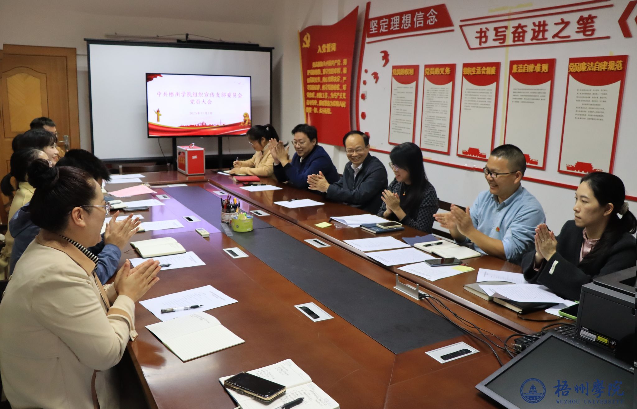 11月4日,组织宣传党支部在明理楼9楼党员谈话室召开支部党员大会。学校党委副书记梁业华以普通党员身份参加会议。党委组织部、党委宣传部全体党员参加会议。会议由党委常委、党委组织部部长郭慧主持。
