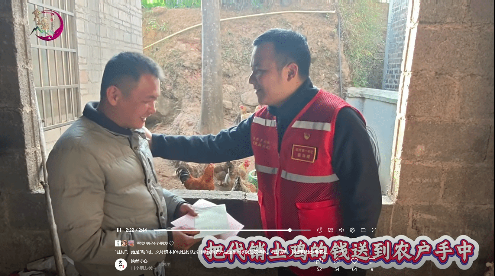 为了让农产品卖得出、卖上好价钱,他不仅挨家挨户走访脱贫户,统计农产品种类和数量,还亲自把关品质、设计宣传文案。驻村以来,他累计为脱贫户代销肉鸡300余只、蜂蜜100余斤、野生灵芝10余斤、生姜4000余斤,直接带动农民增收4.8万元。针对村集体的羽生谷矿泉水,他创新探索“党建+校村合作+电商”模式,联合中国邮政开展直播助农,对接梧州学院推销桶装水3000余桶,拓展线下销售点2个,为村集体经济增收4万余元。为了让更多人知道木护村的农产品,他还自学拍摄剪辑,用手机以轻松愉快的方式记录助农日常,制作短视频《抓鸡》点击量超 3.2 万次,让深山里的农货走出了大山。为了让蒙山特产走向更广阔的市场,蔡林峰还和其他驻村第一书记组队,代表蒙山县赴南宁参加广西脱贫地区农产品年货大集,现场推介木护村及周边村屯的特色农产品,成功带货2万余元,让大山里的土货登上了更大的舞台。